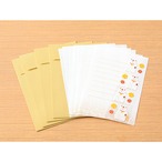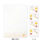 一筆箋感覚で使える小さな便箋とL判写真も入る封筒に、封かんやデコレーションに使えるシールが付いています。